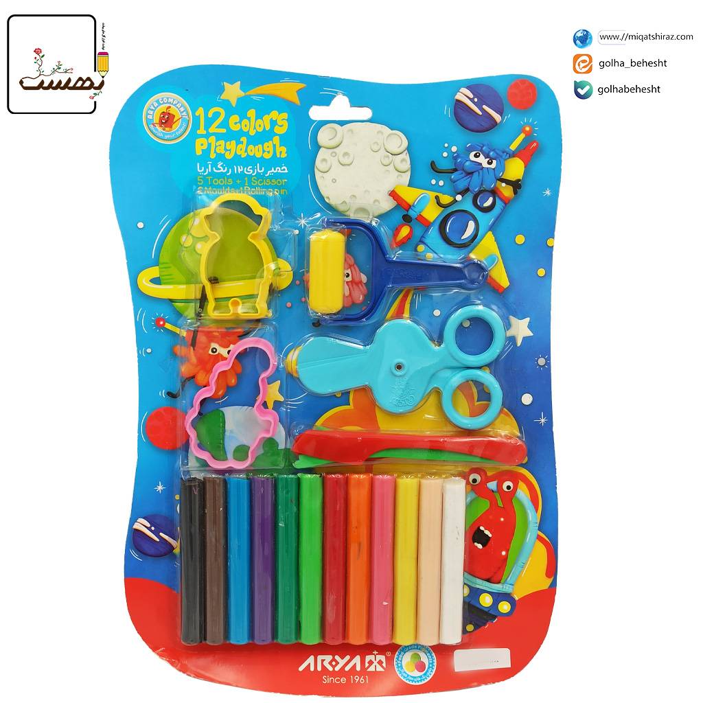 خمیر بازی 12 رنگ آریا، یک مجموعه سرگرمکننده و خلاقانه برای کودکان است